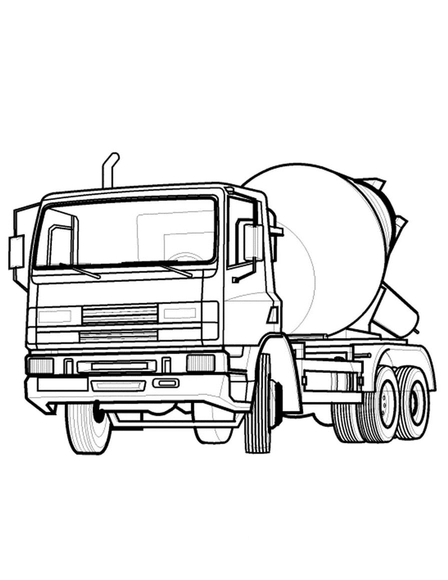 Раскраска «Грузовик бетономешалка» распечатать или скачать.