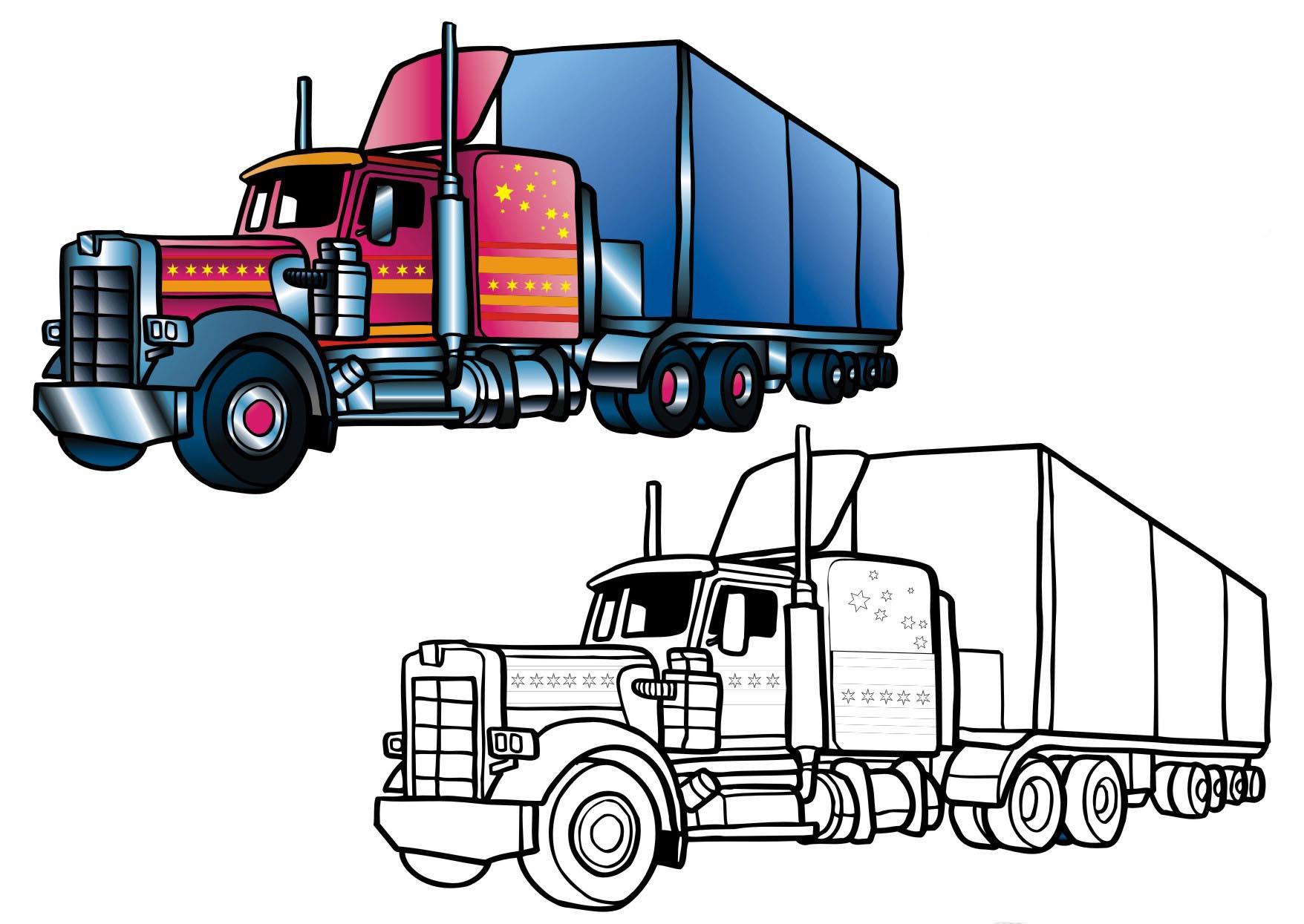 Раскраска «Грузовик с цветным образцом» распечатать или скачать.