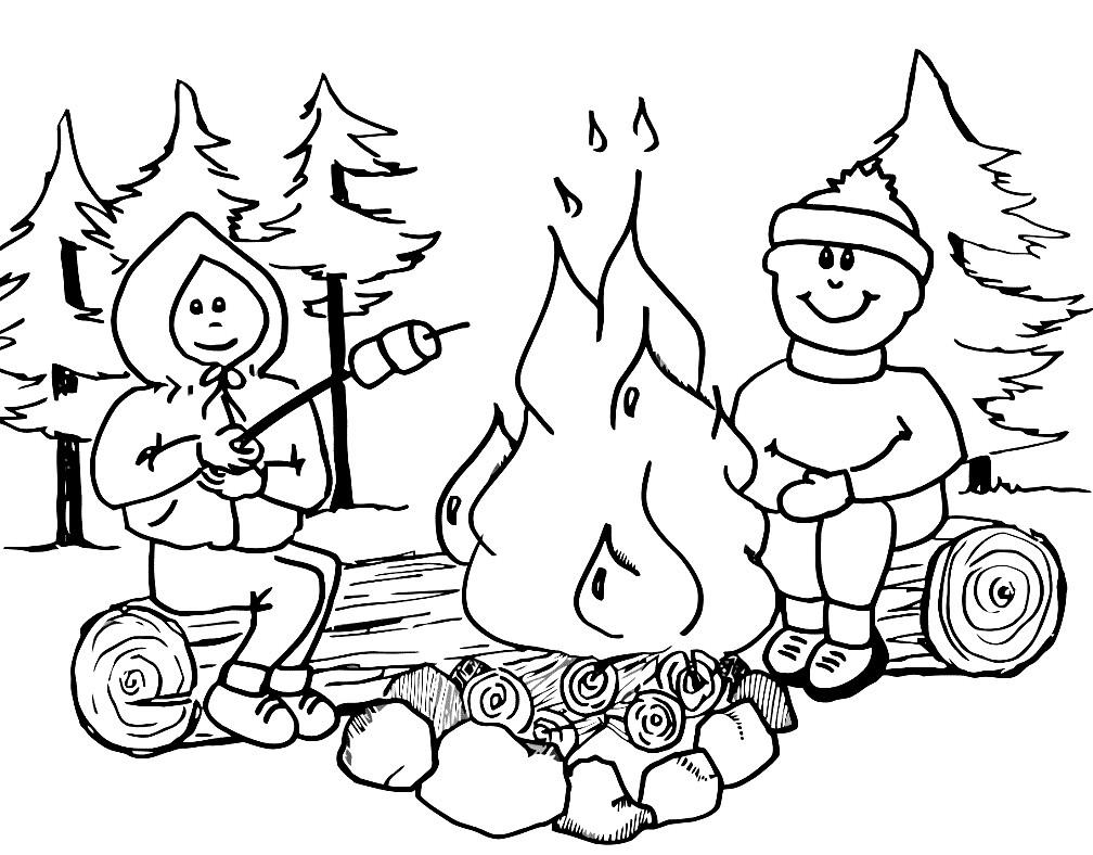 Раскраска «Туристы у костра» распечатать или скачать.