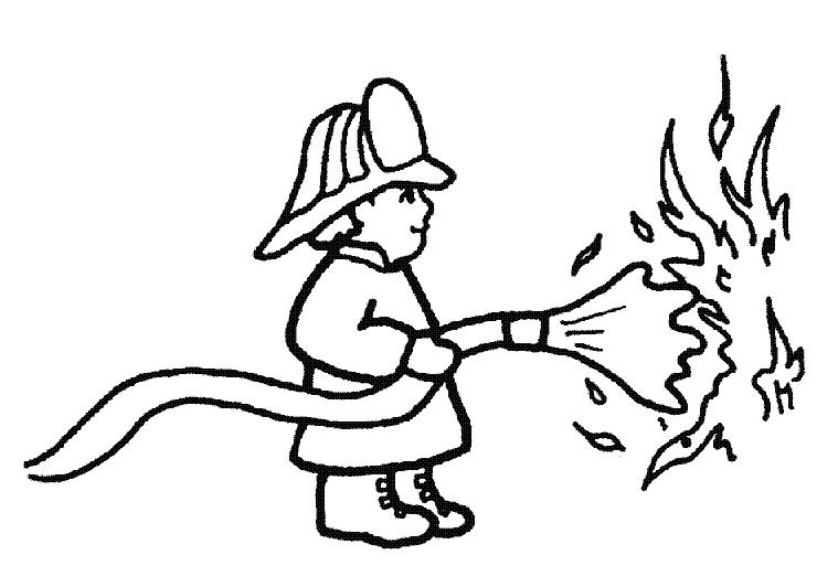 Раскраска «Пожарный тушит огонь» распечатать или скачать.