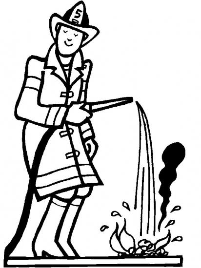Раскраска «Пожарный за работой» распечатать или скачать.
