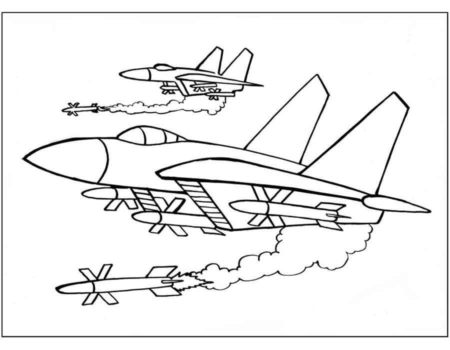 Раскраска «Военный самолет запускает бомбы» распечатать или скачать.