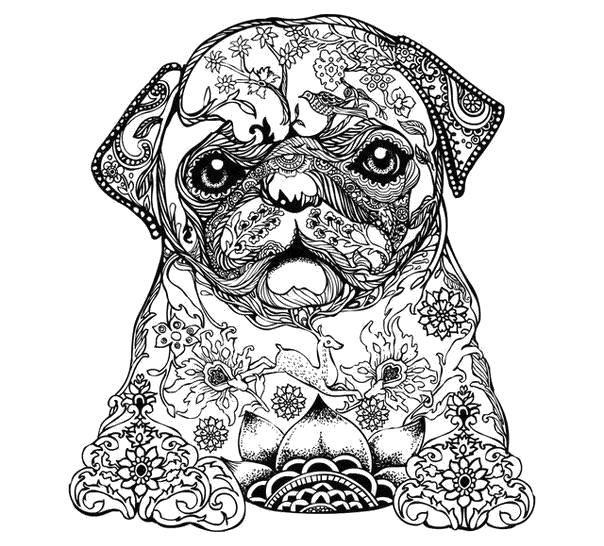 Раскраска «Щенок Мопс антистресс» распечатать или скачать.