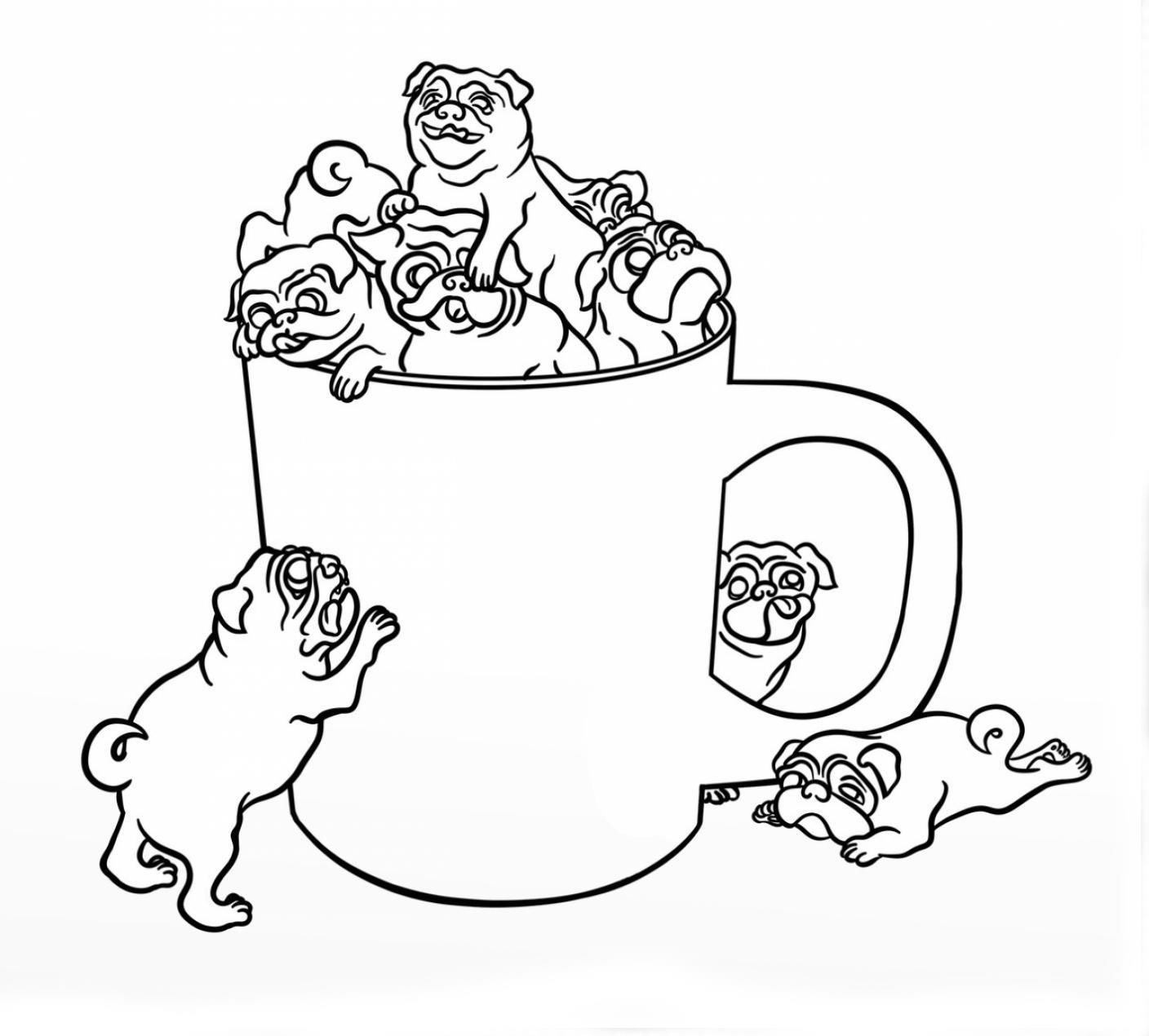 Раскраска «Мопсы в кружке» распечатать или скачать.