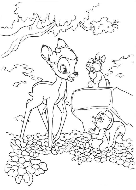 Раскраска «Бэмби, Топотун и Цветочек» распечатать или скачать.