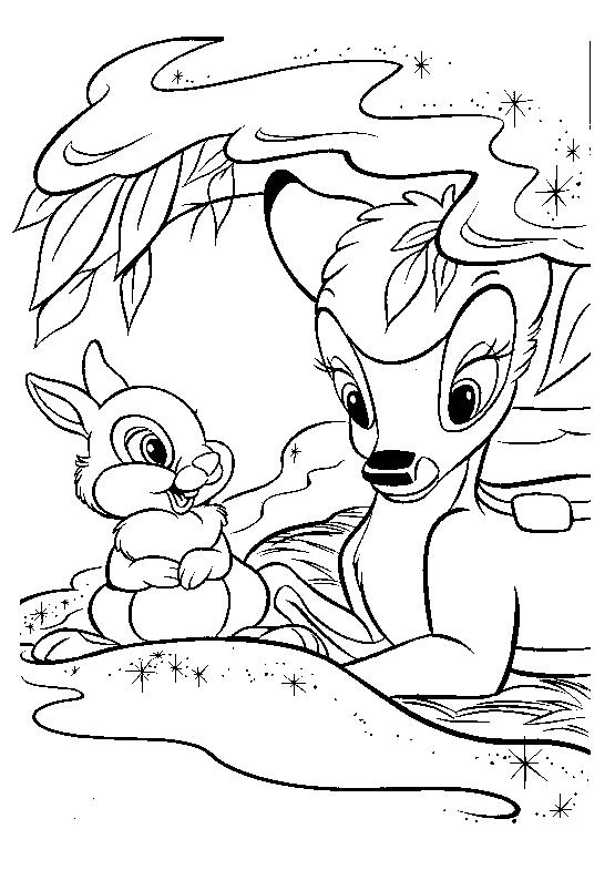 Раскраска «Бэмби и заяц Топотун» распечатать или скачать.