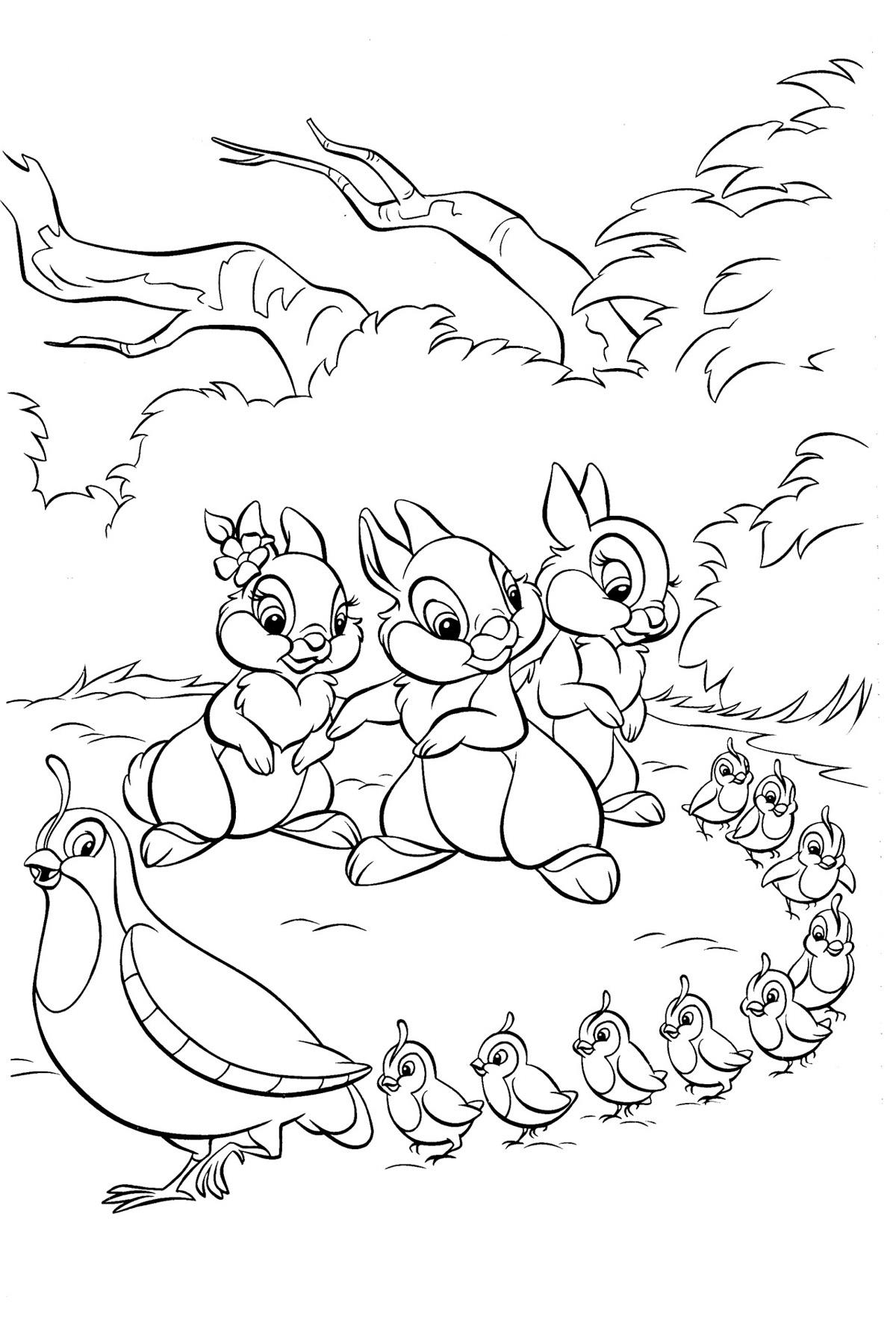 Раскраска «Зайцы и перепелки» распечатать или скачать.