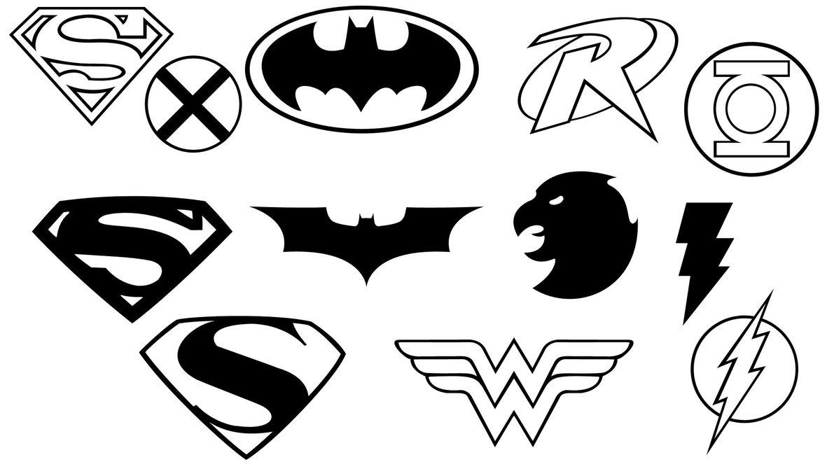 Раскраска «Значки супергероев» распечатать или скачать.