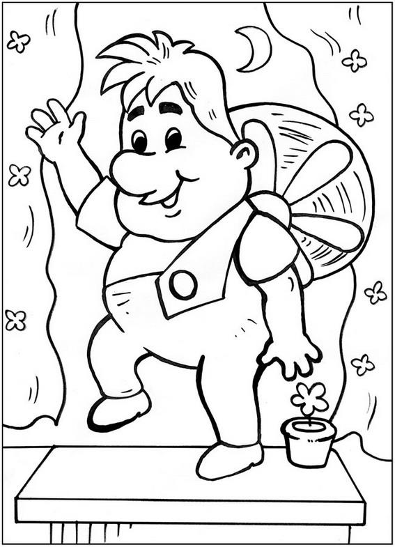 Раскраска «Карлсон на подоконнике» распечатать или скачать.