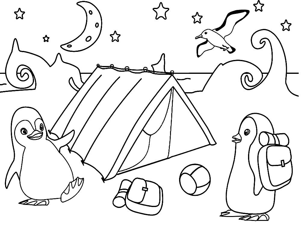 Раскраска «Пингвины в палатке» распечатать или скачать.