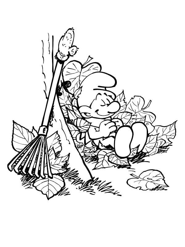 Раскраска «Смурфик лентяй» распечатать или скачать.