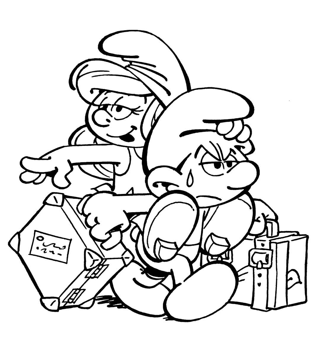 Раскраска «Смурфики в поездке» распечатать или скачать.