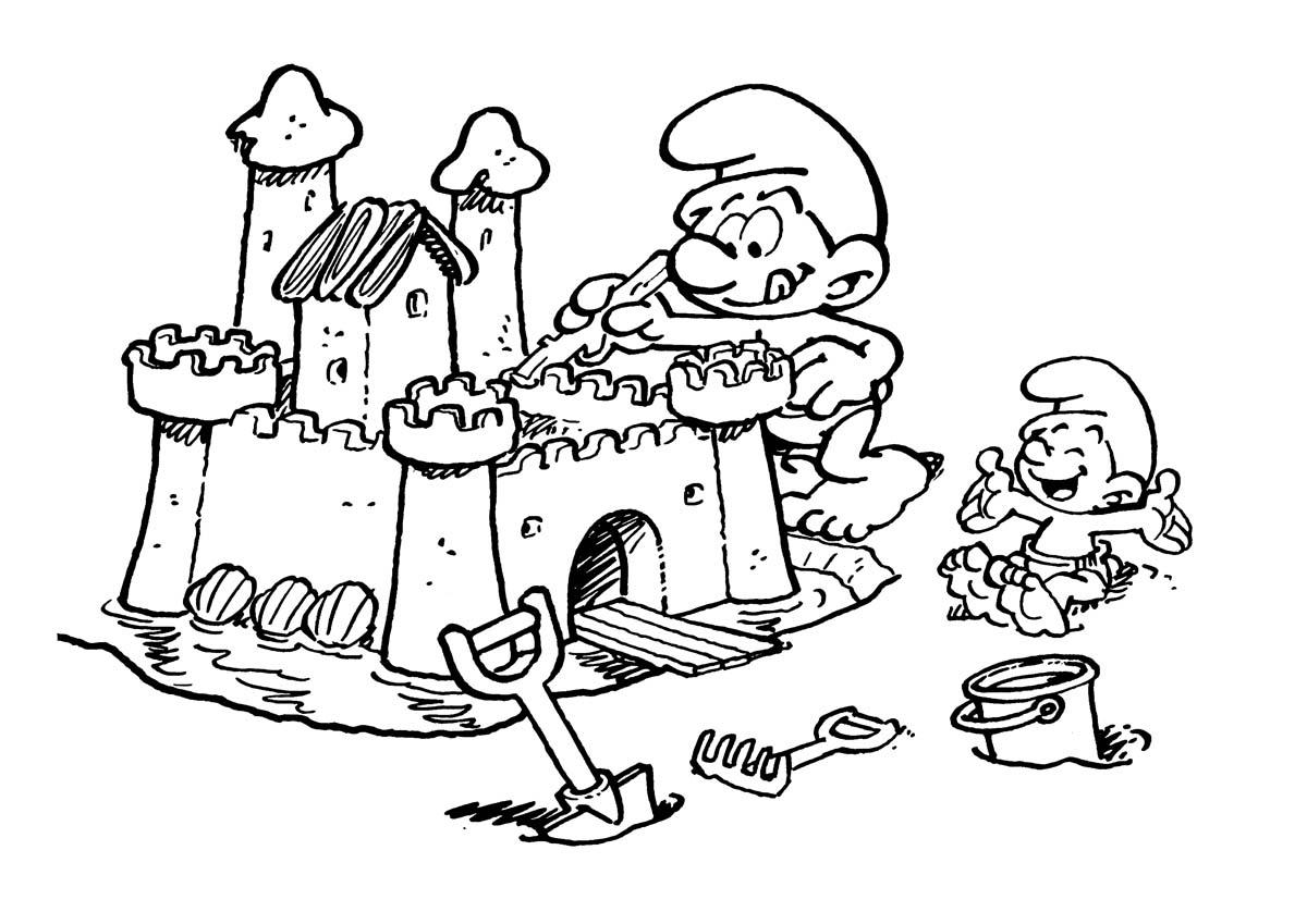 Раскраска «Смурфики с песочнице» распечатать или скачать.