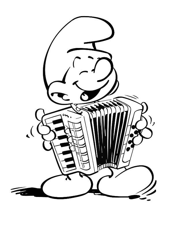 Раскраска «Смурфик музыкант» распечатать или скачать.