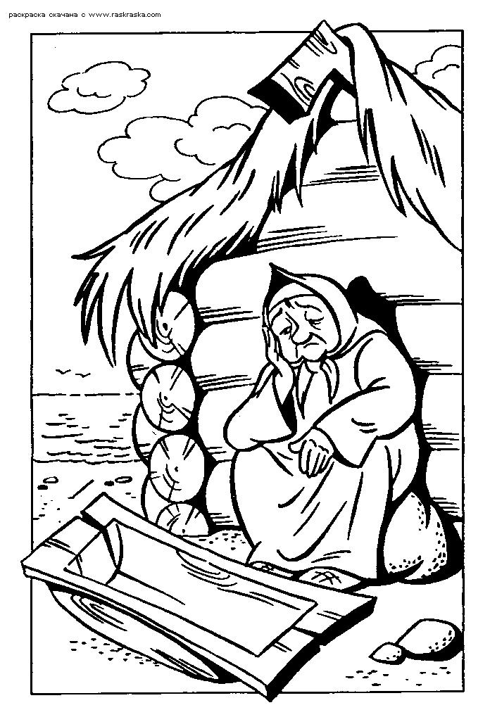 Раскраска «У разбитого корыта» распечатать или скачать.