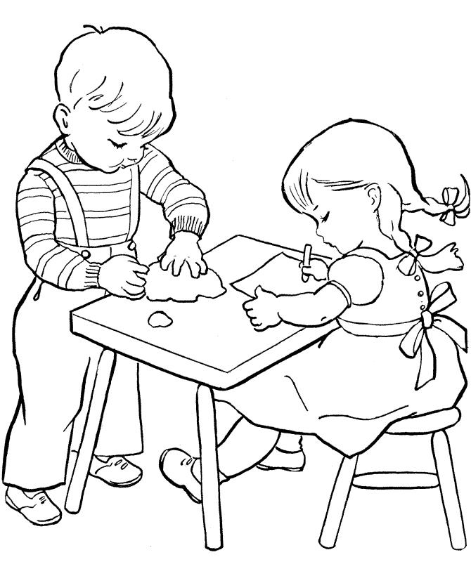 Раскраска «Дети рисуют» распечатать или скачать.