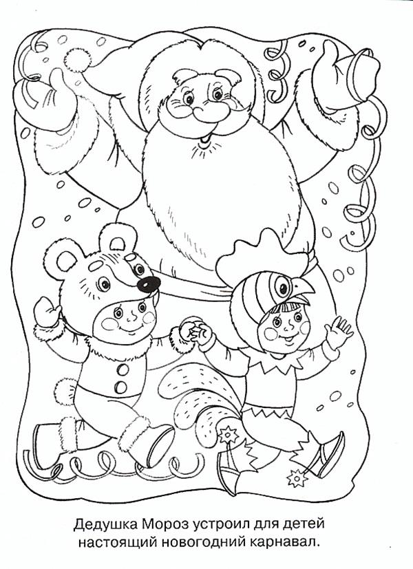 Раскраска «Дед Мороз и дети» распечатать или скачать.