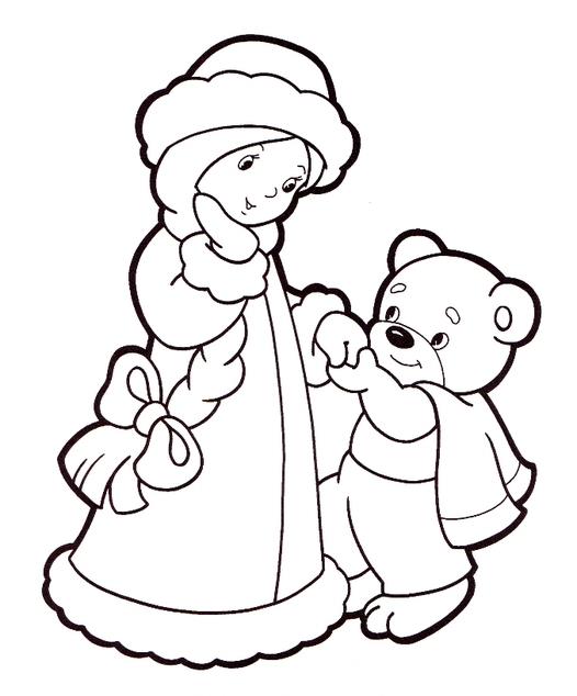 Раскраска «Снегурочка и мишка» распечатать или скачать.