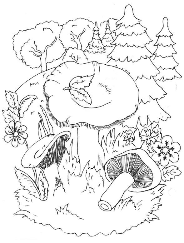 Раскраска «Грибочки на опушке» распечатать или скачать.