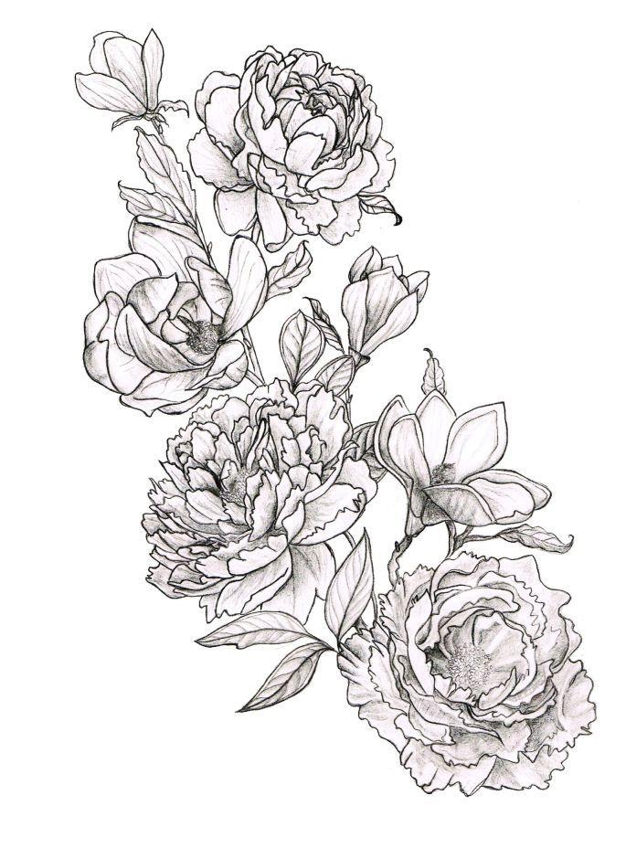 Раскраска «Ветка пионов» распечатать или скачать.