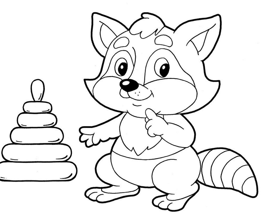 Раскраска «Енот с пирамидкой» распечатать или скачать.