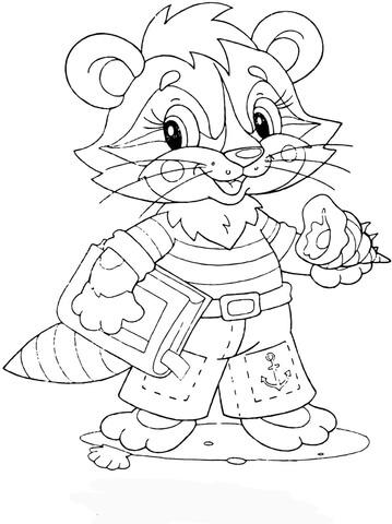Раскраска «Енот с мороженым» распечатать или скачать.