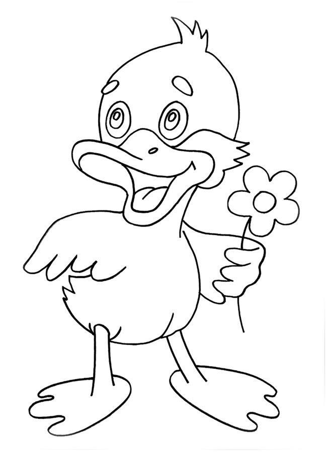Раскраска «Утенок с цветком» распечатать или скачать.