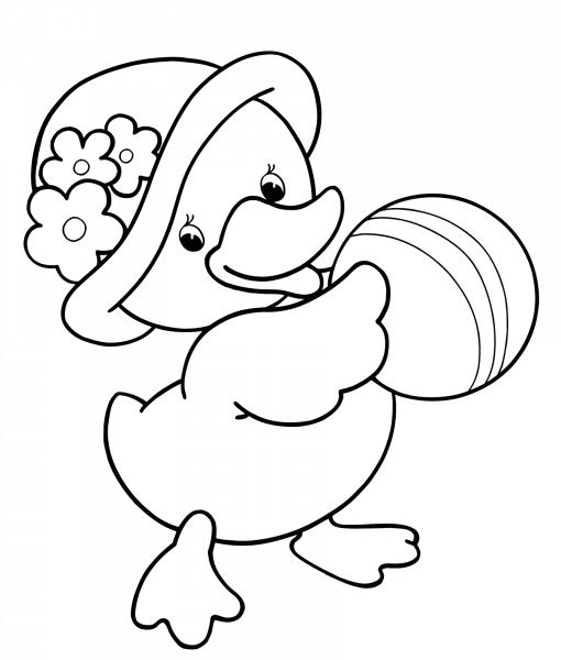 Раскраска «Утенок с мячом» распечатать или скачать.